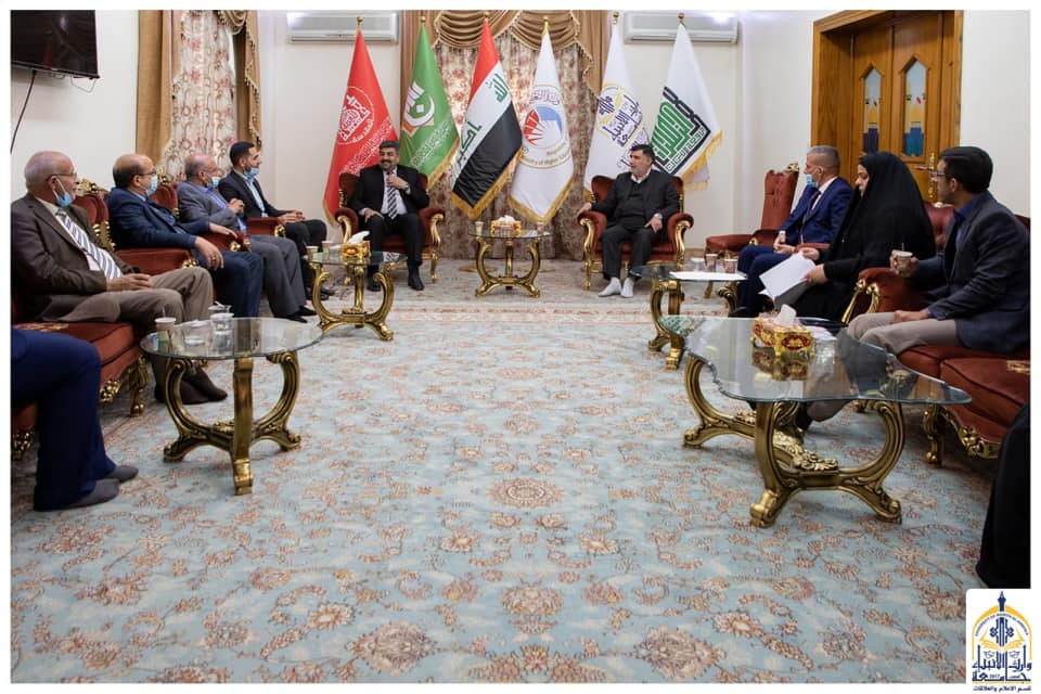 زار وفد اكاديمي من جامعة واسط جامعة وارث الانبياء (عليه السلام) حيث ترأس الوفد السيد رئيس جامعة واسط الاستاذ الدكتور مازن حسن الحسني برفقة السيد عميد كلية الطب وبعض السادة عمداء وتدريسي كليات جامعة واسط ، وكان باستقبال الوفد السيد رئيس قسم التعليم العالي في العتبة الحسينية المقدسة الدكتور افضل الشامي ، تم خلال اللقاء عرض برنامج تعاون بين الجامعتين يهدف الى تبادل الخبرات والتدريب والاستشارات في المجالات ذات الاهتمام المشترك وخاصة المتعلقة بتطوير المناهج الدراسية ورفع كفاءة الهيئة التدريسية وتنمية الانشطة الخاصة بالطلبة والملاكات العلمية والادارية والفنية .