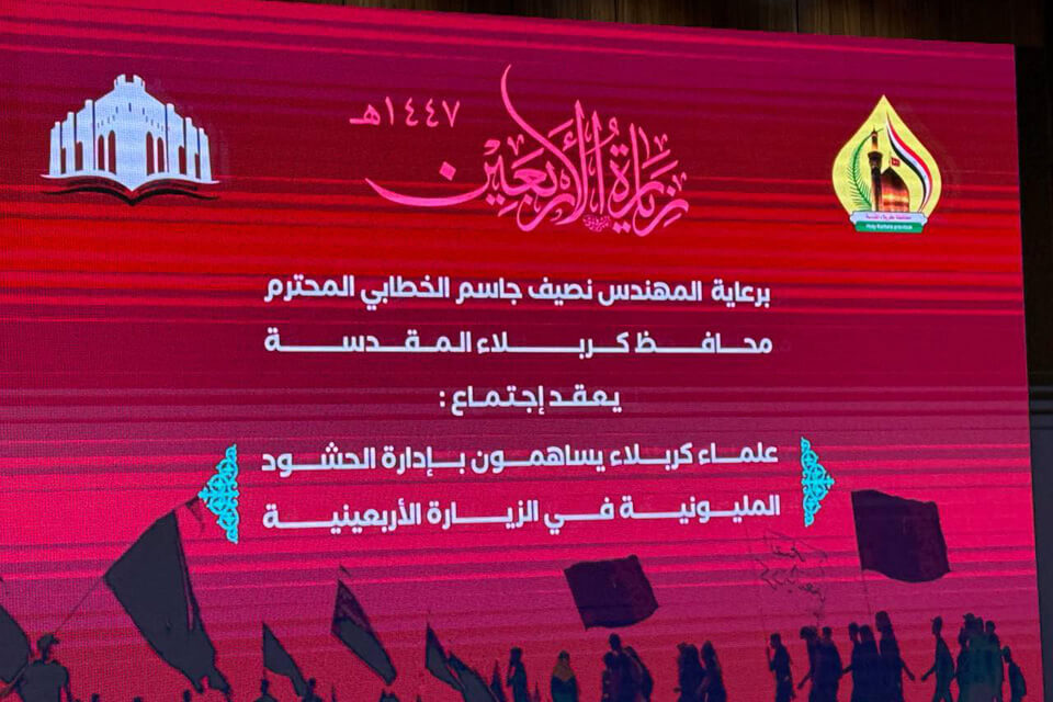 "علماء كربلاء يساهمون في إدارة الحشود المليونية في الزيارة الأربعينية"، بحضور الأمين العام للعتبة الحسينية المقدسة وعدد من المسؤولين وممثلي الجامعات.