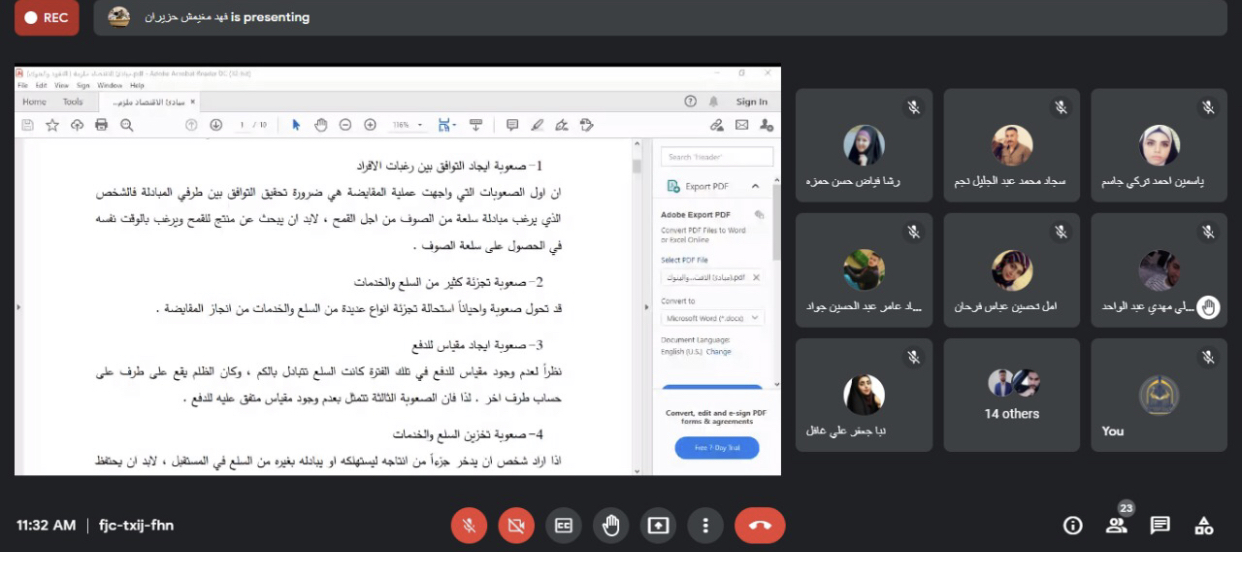 ضمن المتابعة المستمره للجامعة في متابعة المحاضرات الالكترونيه زار التعليم الالكتروني في جامعة وارث الانبياء(عليه السلام)القاعات الدراسية الالكترونيه في جميع الكليات والاقسام للاطلاع على جودة سير المحاضرات والمشاكل التي يواجهها  الاساتذه والطلبه .