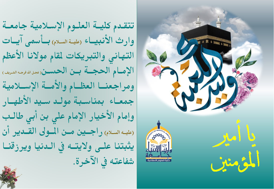 ولادته :قال عليّ (عليه السلام) :(فإنّي ولدتُ على الفطرة وسَبقتُ إلى الإيمان والهجرة . ولِد الإمام عليّ (عليه السلام) بمكّة المشرّفة داخل البيت الحرام وفي جوف الكعبة في يوم الجمعة الثالث عشر من شهر رجب سنة ثلاثين من عام الفيل قبل الهجرة بثلاث وعشرين سنة، ولم يولد في بيت الله الحرام قبله أحد سواه، وهي فضيلة خصّه الله تعالى بها إجلالاً له وإعلاءً لمرتبته وإظهاراً لتكرمته.