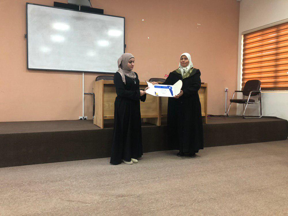 قامة عمادة الكلية ومجلسها الممثل بالاستاذ الدكتور عامر العطوي ود.نضال المالكي ود.فهد الشمري بتكريم الطلبة الاوائل للدراسة الصباحية والمسائية للمرحلتين الاولى والثانية وللقسمين المحاسبة وادارة اعمال في يوم الاحد 3/3/2019 وكذلك تم تكريم افضل طالبة محتشمة لكل قسم وقد حضر مجموعة من السادة التدريسيين والطلبة حفل التكريم