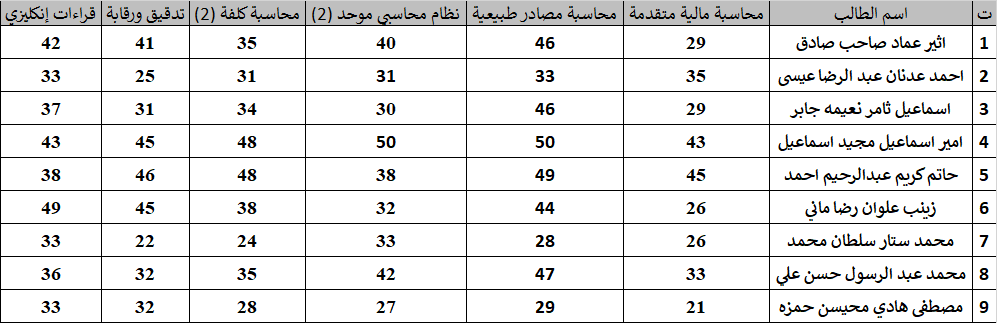اعلان ... نتائج الاعتراضات على درجات الكورس الثاني لقسم المحاسبة للعام الدارسي 2021 - 2022