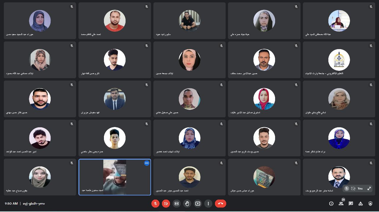 برئاسة السيد رئيس قسم المحاسبة د.هبة الله ،وبحضور معاون العميد للشؤون العلميه أ.م.د فهد الشمري والسيد مقرر القسم م. علي محمد الكيشوان وبحضور السادة التدريسيين في القسم عقد مساء اليوم الثلاثاء الموافق ١٧-٥-2022 وعلى منصة الجوجل ميت في تمام الساعه التاسعة والنصف مساءا للاجتماع الرابع للقسم ، للفصل الدراسي الثاني .وفي البدء رحب السيد رئيس القسم بالسيد المعاون العلمي حضوره الاجتماع شاكراً متابعته لجميع النشاطات العلمية والفكرية في الكلية ، ثم تحدث السيد المعاون للسادة اعضاء الهيئة التدريسية في القسم ، مقدماً بعض التوجيهات المهمة حول الامتحانات النهائية وضرورة استخدام كافة الوسائل من اجل انجاز هذه العمليه بنجاح مؤكدا على ضرورة بذل الجهود من اجل ترصين التعليم ، من خلال الالتزام بالمستوى العلمي وضمن معايير الجودة ، مؤكداً على ان الطالب هو الاساس المادي والمعنوي للعملية الاكاديمية وعنصر مهم كأحد نواتج مخرجات التعليم العالي والبنية الاساسية في بناء المجتمع وصنع التقدم والمستقبل الزاهر .واكدت رئيس القسم على ضرورة اتمام متطلبات العمليه الامتحانيه وضرورة رفع الاسئلة وتنوعها والالتزام بالتوقيتات المعيارية لها، ودعت الى ضرورة الاسراع في تهيئة الاسئلة والسعيات وتسليمها للجان المختصة فضلا عن عدة امور اخرى. واستمعت الى مقترحات بعض السادة التدريسيين وتم مناقشتها ؛ فضلا عن اكدت على ضرورة متابعه الطلبه والزامهم في استخدام الصورة الشخصيه والايميل الجامعي في الإمتحان الالكتروني واختتم الإجتماع في تمام الساعة العاشرة والنصف من مساء اليوم