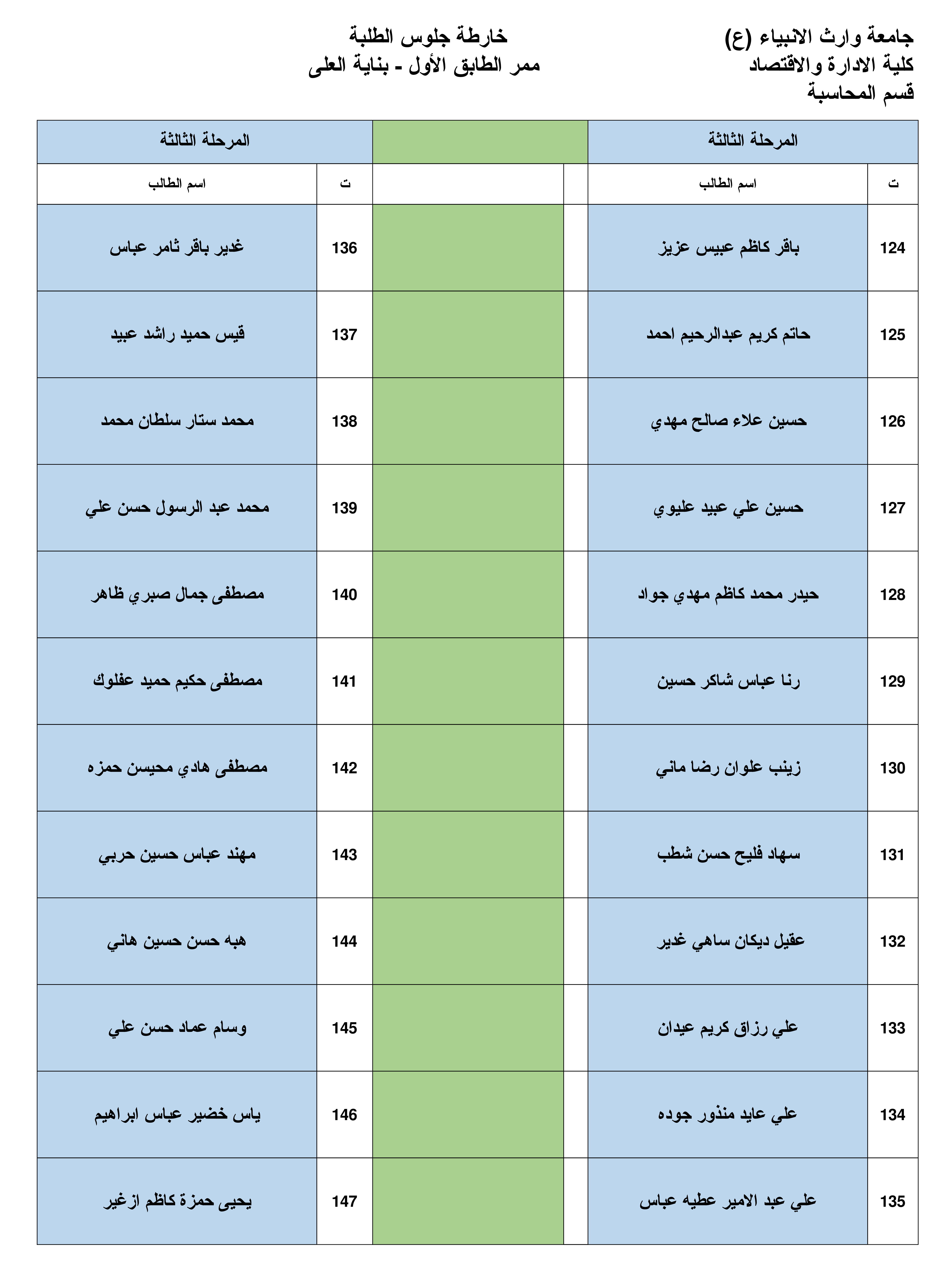 خارطة جلوس طلبة قسم المحاسبة المرحلة الأولى والثالثة
