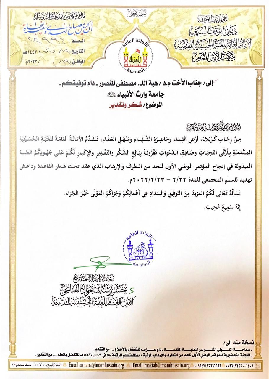 مؤتمر علمي مشترك بين جامعة وارث الأنبياء وجامعة المثنى