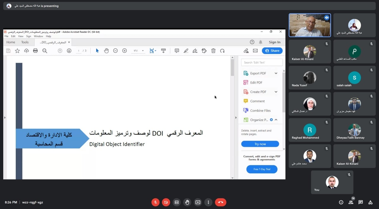 حيث تمت مناقشة الامور الواجب تنفيذها مثل الحصول على المعرف الرقمي (DOI) من أجل تهيئة المجلة للدخول إلى متسوعبات سكوباس.