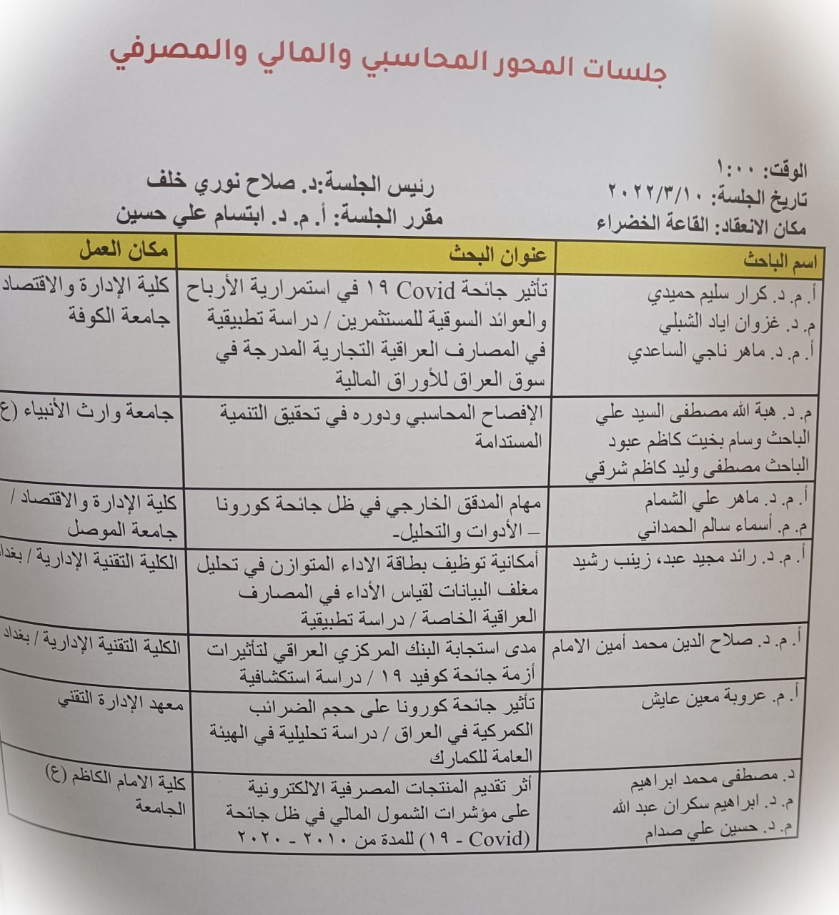 بفضل الله تم إطلاق اطلاق المعايير البرامجيه الوطنيه لكليات الادارة والاقتصاد في يوم ٢٨ / ٣ /٢٠٢٢ وبحضور كليات الادارة والاقتصاد الحكوميه والأهلية .اذ تم دعوة كل من الاستاذ الدكتور عواد الخالدي عميد كلية الادارة والاقتصاد ألاستاذ المساعد الدكتور فهد الشمريوالمدرس الدكتورة هبة الله مصطفى