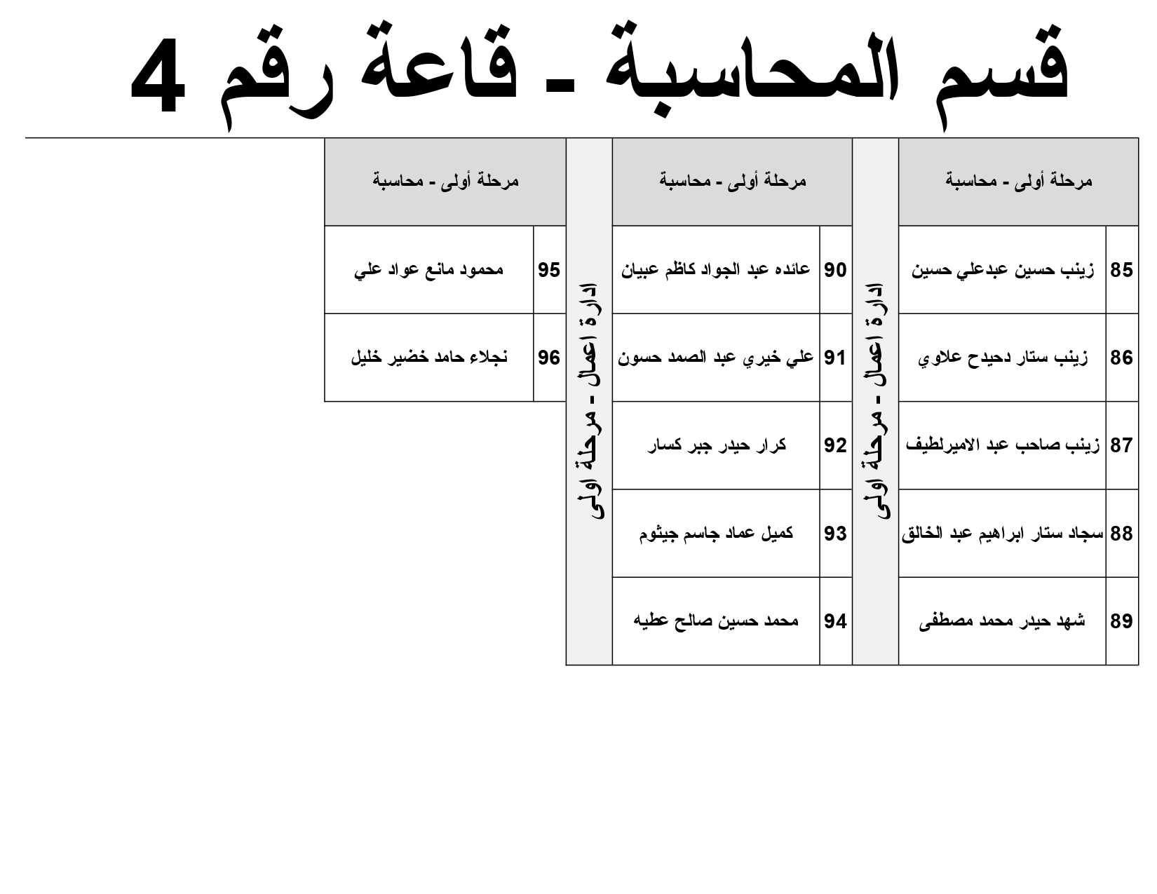 خارطة جلوس طلبة قسم المحاسبة المرحلة الاولى