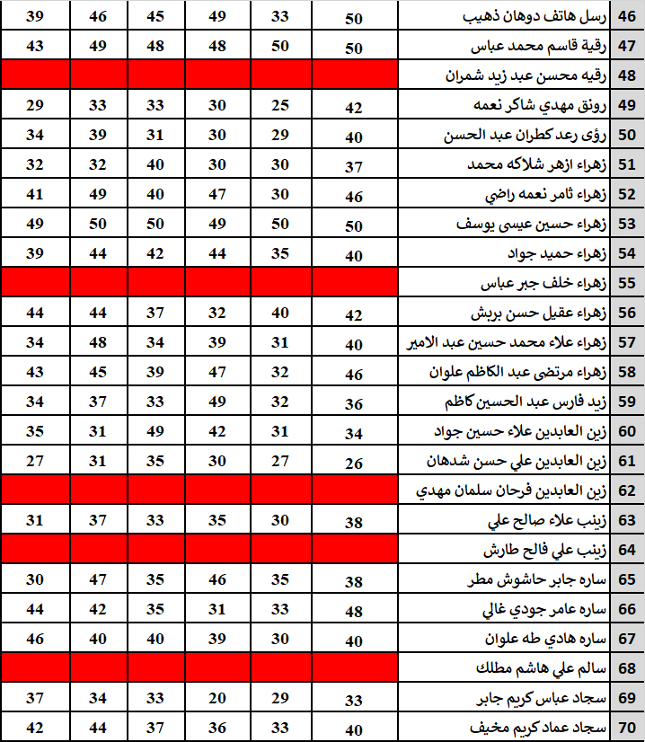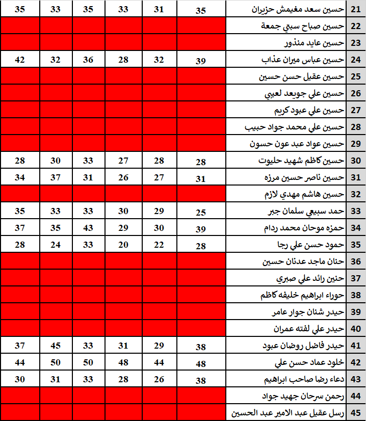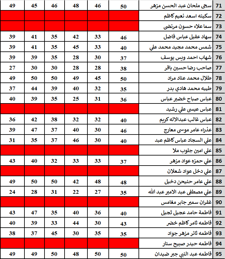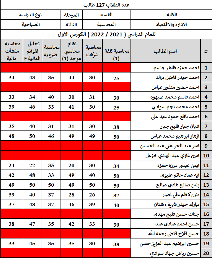 درجات السعي السنوي لطلبة قسم المحاسبة / المرحلة الثالثة صباحي