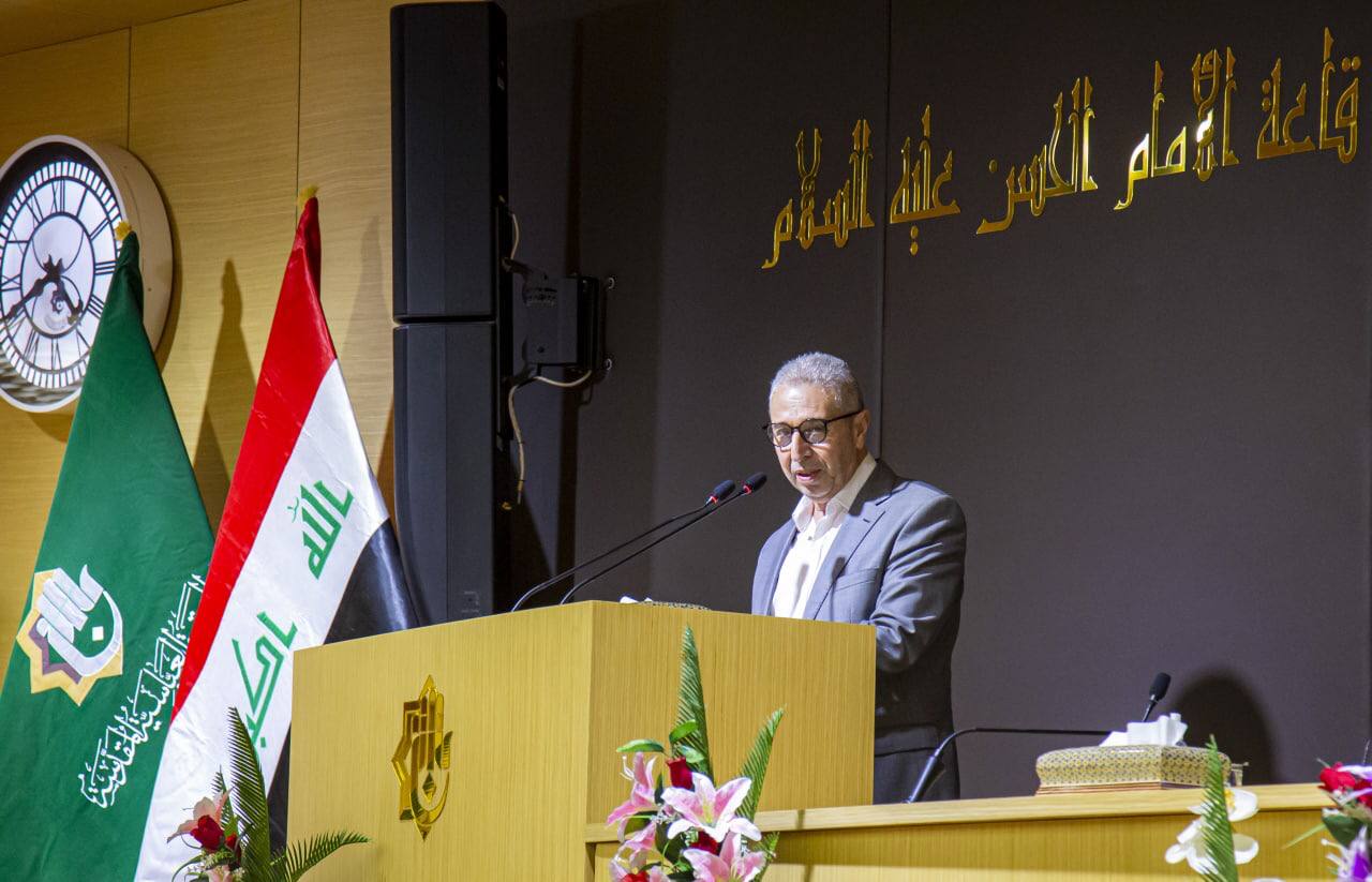 فكلُ الشكرِ والتقديرِ لإدارةِ العتبةِ العباسية المقدسة ولا سيما ادارةُ قسمِ المعارف الإسلامية والإنسانية....  وأقولُ لهم  إننا في الجامعاتِ العراقيةِ كافة نشدُ على عضدِكم ونواكبُ خطاكُم في تجسيدِ خطى مدرسةِ أهلِ البيتِ عليهم السلام، وأقولُ أنّه مهما بذلنا من جهدٍ واجتهادٍ خدمةً للإنسانِ سيبقى العقلُ والضميرُ وصوتُ الحقِ يستصرخُنا لتقديمِ المزيدِ خدمةً للدينِ والانسانِ والوطنِ.