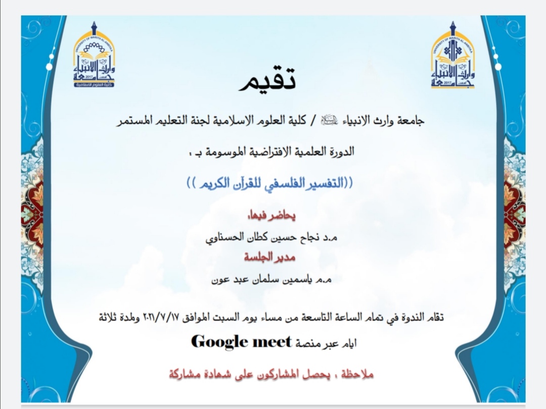 ضمن الخطة العلمية لكلية العلوم الاسلامية في جامعة وارث الانبياء للعام 2020-2021.