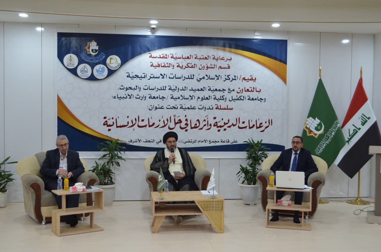 شارك السيد عميد كلية العلوم الاسلامية في جامعة وارث الانبياء والوفد المرافق له في سلسلة الندوات العلمية التي أقيمت بالتعاون بين كليتنا والمركز الإسلامي للدراسات الاستراتيجية التابع للعتبة العباسية وقدم السيد عميد الكلية الدكتور طلال الكمالي ملخصا لبحثه الموسوم (أثر استشراف المسقبل في تعزيز الخطاب الديني مع الآخر دراسة في القرآن الكريم ) بعد كلمة سماحة السيد رشيد الحسيني دامت توفيقاته