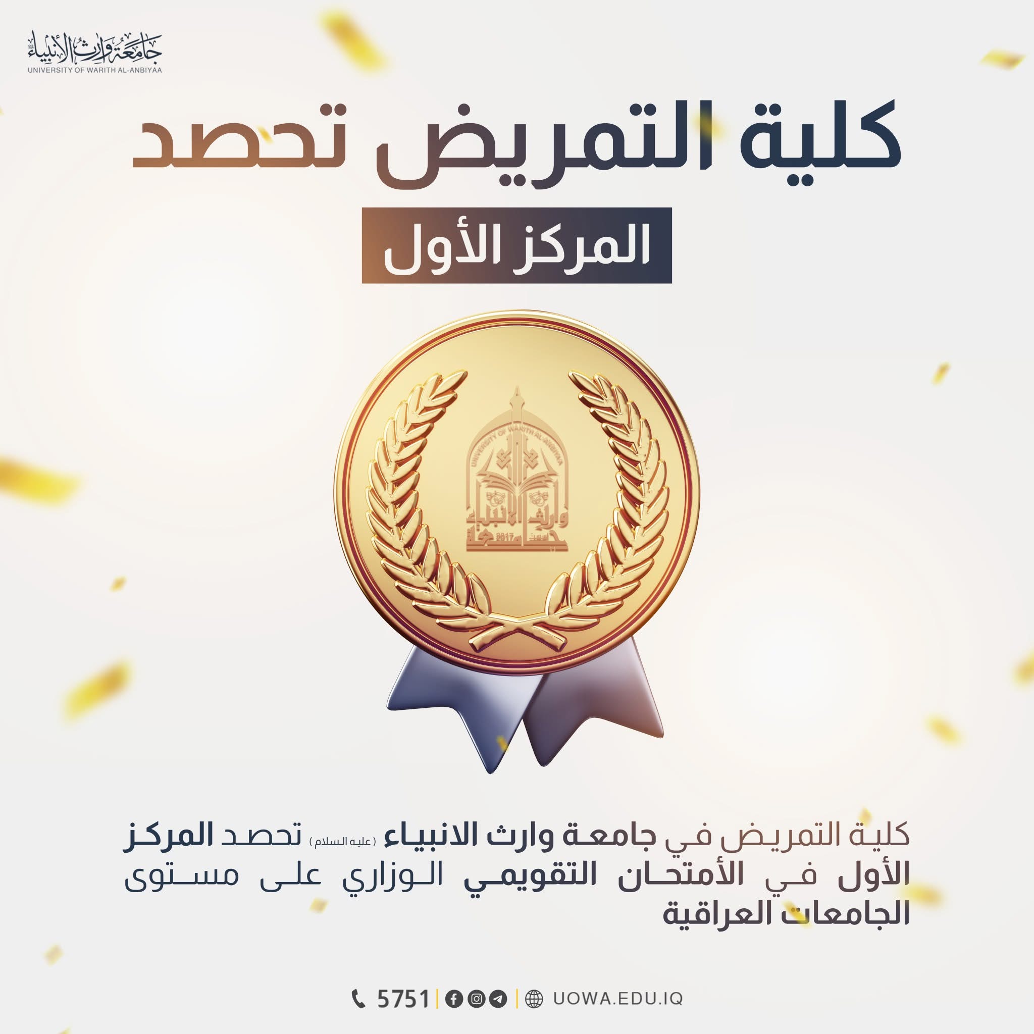 كلية التمريض بجامعة وارث الانبياء عليه السلام تحصد المركز الثاني على كليات التمريض العراقية الاهليه في نتائج التصنيف العراقي للكليات للعام 2023.حصدت كلية التمريض على المركز الخامس في التصنيف العراقي لكليات التمريض العراقية الحكومية والاهلية احرزت مراتب متقدمه متجاوز بذالك كليات حكومية عريقه في نتائج التصنيف العراقي لكليات التمريض العراقية الحكومية والأهلية للعام 2023.وحرصا على تطوير البيئة التعليمية وقياس مؤشرات الأداء المؤسسي والبرامجي ومسار البحث العلمي تعلن وزارة التعليم العالي والبحث العلمي نتائج التصنيف العراقي ويتم إنجاز هذا التصنيف من قبل جهاز الإشراف والتقويم العلمي في وزارة التعليم العالي والبحث العلمي بهدف الإرتقاء بالبيئة التعليمية ويعتمد التصنيف العراقي للكليات وفي الختام اثنى السيد العميد الاستاذ الدكتور مرتضى غانم عداي ال كتاب الجبوري ان رفع اسم كلية التمريض بين كليات التمريض العراقية وعلى الصعيد المحلي والاقليمي والعالمي يأتي ضمن جهود عمادة كلية التمريض وشعبة ضمان الجودة والاداء الجامعي وثمرة أساتذة الكلية وعملهم الدؤوب في انجاز المهام المكلفة اليهم والعمل بروح الفريق الواحد لانجاز المهام باكمل وجه وبالسرعة الممكنة.سائلين الله العلي العظيم المزيد من الإنجازات العلمية المتميزة لرفع اسم كليتنا في المحافل المحلية والدولية .