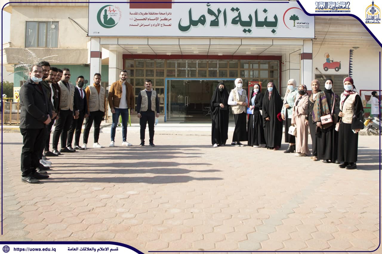 ضمن نشاطتها المجتمعية في تقديم الخدمات الإنسانية، قامت كلية التمريض في جامعة وارث الانبياء(عليه السلام) بزيارة الى مركز كربلاء لجراحة القلب، إذ زار الطلبة برفقة الكادر التدريسي المركز لتفقد المرضى وتوزيع مطبوعات توعوية عن امراض القلب للراقدين هناك.
