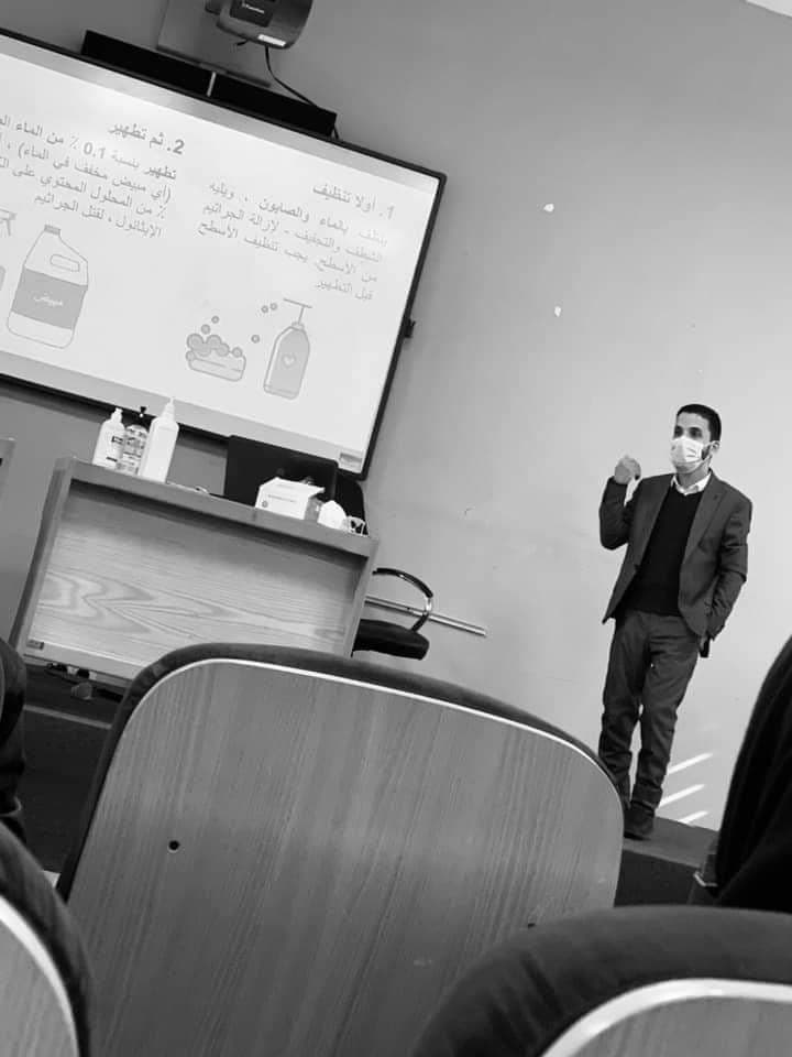 القى التدريسي في كلية التمريض المدرس المساعد بهاء علاء فرحان دورة تدريبية بعنوان (طرق الوقاية من الاصابة بفايروس كورونا والحد من انتشاره ) يوم الاربعاء 27/1/2021 في تمام الساعة التاسعة صباحا وبمشاركة تدريسي وطلبة الجامعة.