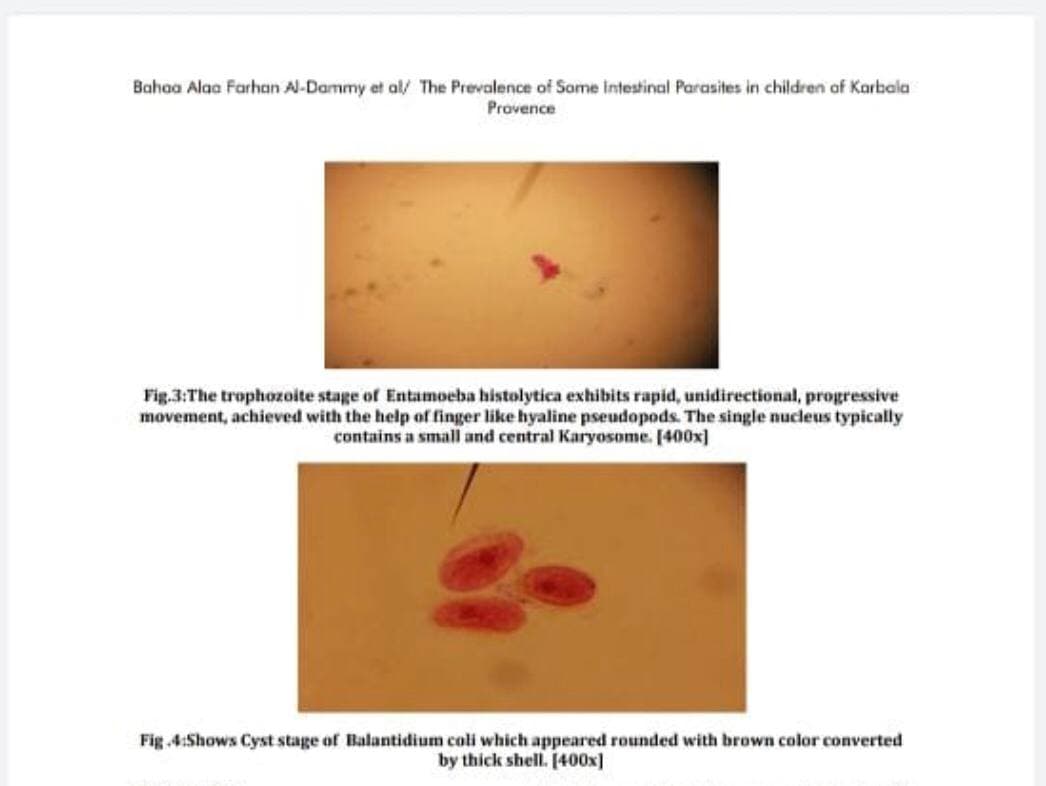 بتوفيق من الله تم نشر بحث مفرد في المجله العالميه (pharmaceutical Research ) والمصنفه ضمن مستوعبات سكوبس العالمي (Q2 scopus) للاستاذ الباحث ( م.م بهاء علاء فرحان ). البحث يتطرق الى مسح ميداني لمدى انتشار حالات الاصابه بالطفيليات الجهاز الهضمي intestinal parasite في الاطفال في محافظه كربلاء وحساب أليه تأثير الاصابه على المستوى الصحي للاطفال ودراست اهم الظواهر من علامات مرضيه شائعه تواكب الاصابه بهذا النوع من العدوى وتم التشخيص عن طريق جمع عينات من اطفال تظهر عليهم علامات هضميه من متوسطه الى شديده واستخدام طريقه الفحص المجهري المختبري...