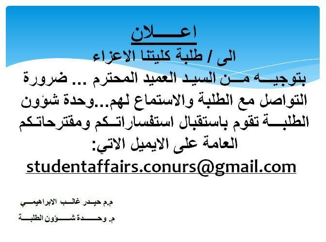 يمكنكم التواصل مع وحدة شؤون الطلبة في حال وجود اي مشكلة او استفسار