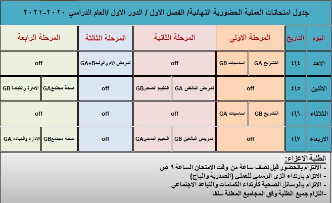 استعدادات كلية التمريض للامتحانات النهائية الحضورية للفصل الدراسي الاول 2020-2021