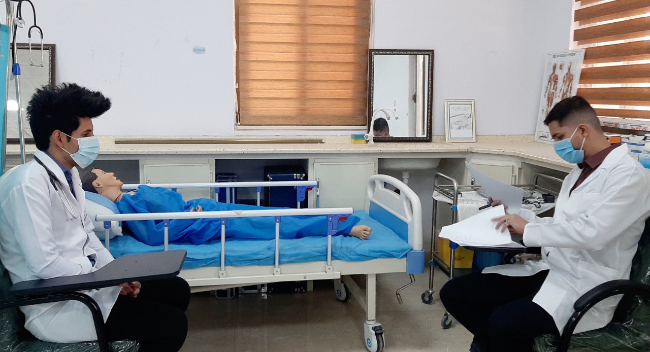 طلبة كلية التمريض يؤدون الامتحانات العملية النهائية في داخل مختبرات الكلية