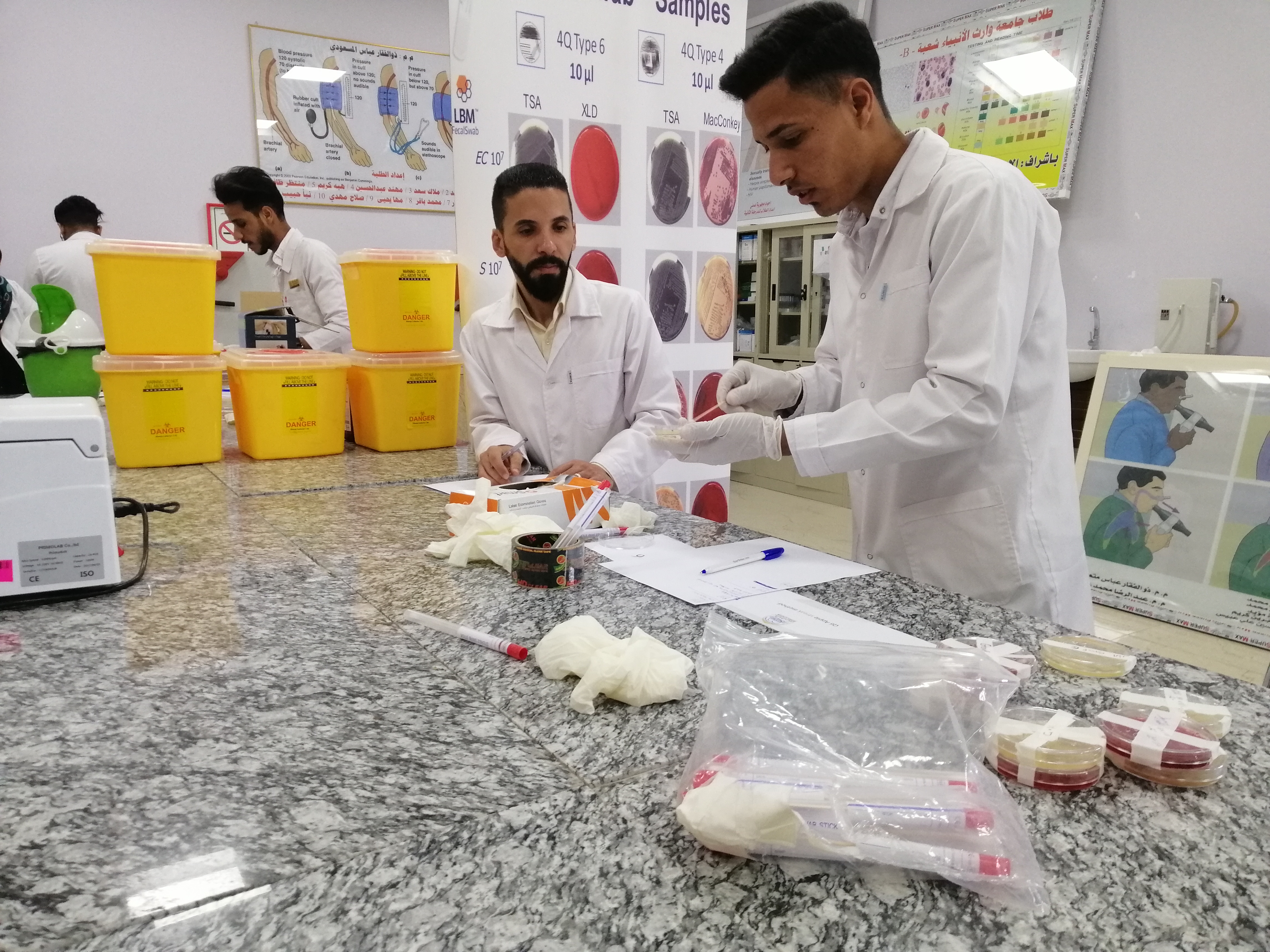 كلية التمريض / جامعة وارث الانبياء ( عليه السلام) تجري امتحان عملي لطلبة المرحلة الثانية في مادة الاحياء المجهرية ، كما بين الاستاذ م.م.بهاء علاء فرحان الدعمي ان الامتحان اجري وفق طرق حديثة لاظهار امكانيات الطالب العلمية والعملية في التعامل مع الاجهزة المختبرية وطرق تعقيم الادوات وطرق اخذ العينات والاوساط الزرعية،