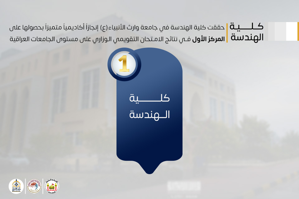 كلية الهندسة في جامعة وارث الأنبياء تحرز المركز الأول في الامتحان التقويمي الوزاري على مستوى العراق