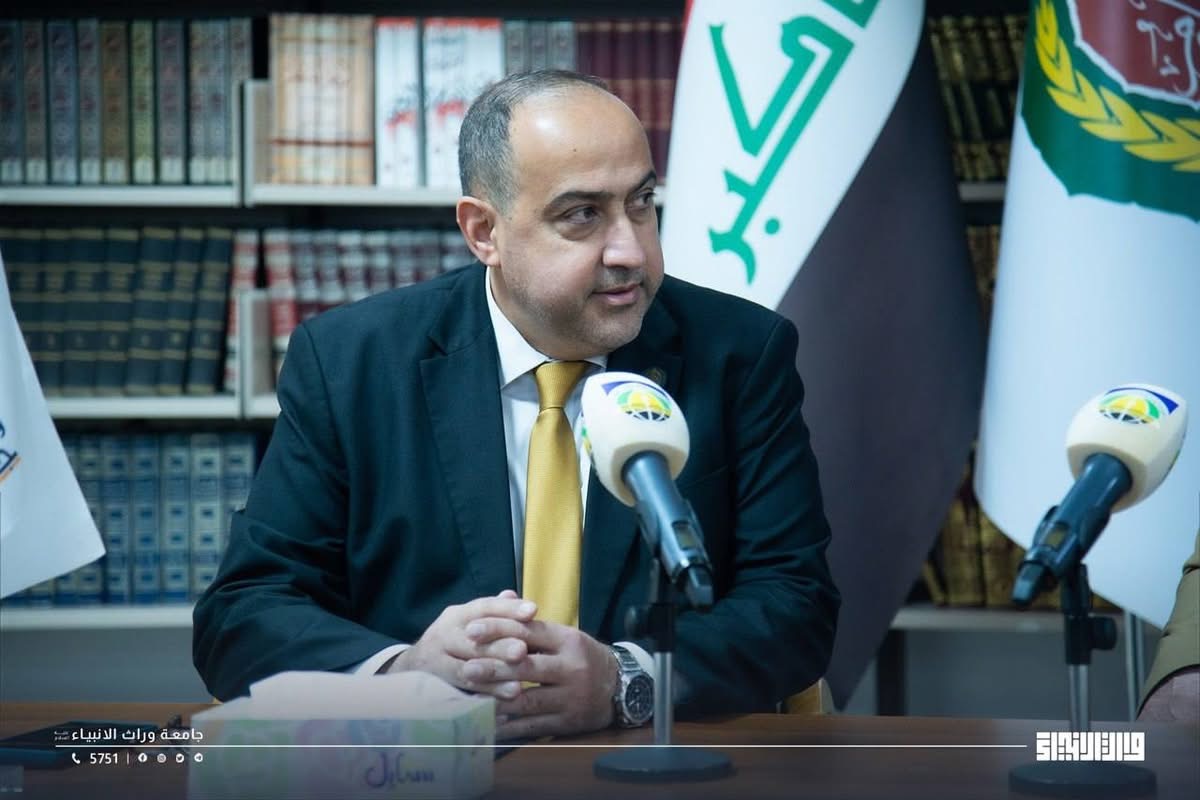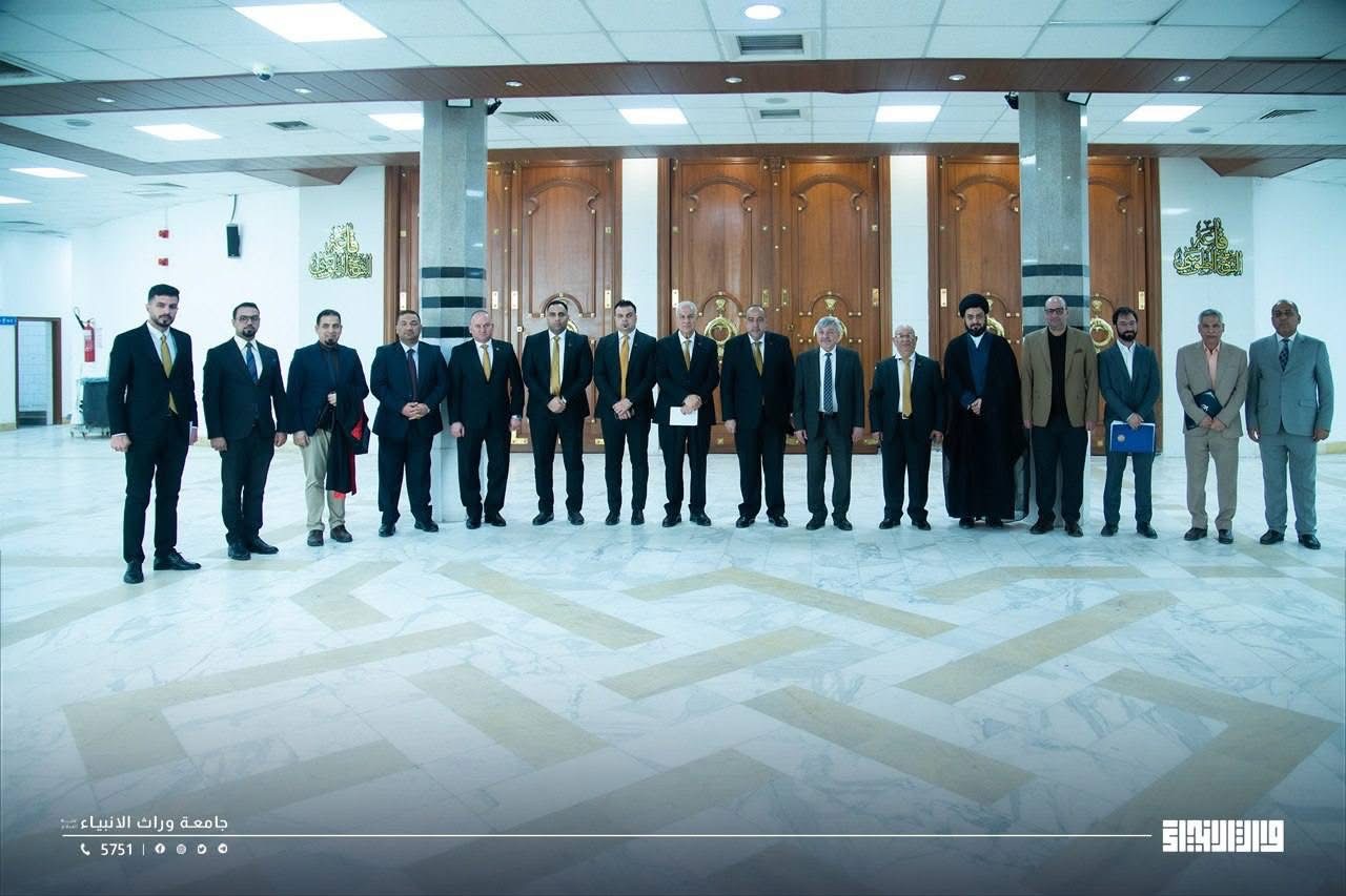 ​University of Warith Al-Anbiyaa Delegation Visits Al-Alamein Institute for Higher Education​A delegation from the University of Warith Al-Anbiyaa, led by the University President, Professor Dr. Ibrahim Al-Hayawi, and accompanied by several college deans, visited the Al-Alamein Institute for Higher Education. The meeting was attended by the Dean of the College of Administration and Economics, Professor Dr. Awad Al-Khalidi, the Vice-Dean, Dr. Hussein Matook, and the Head of Quality Assurance, Professor Dr. Talal Al-Jijawi.