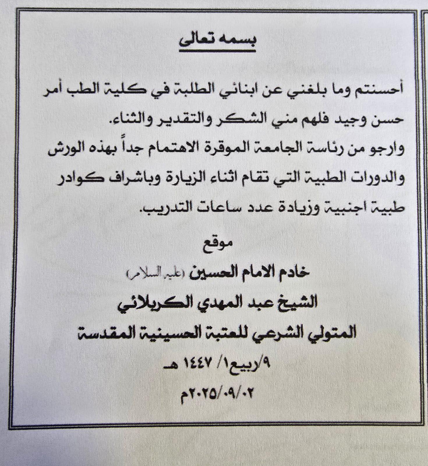 The University of Warith Al-Anbiyaa (Peace Be Upon Him) concluded the activities of its first annual festival held in the Aula Hall, celebrating World Arabic Language Day. The agenda for the second and final day included presentations of four research papers by Dr. Adnan Al-Sharoufi, Dr. Latif Al-Qasab, Dr. Star Al-Ghazi, and Dr. Sami Al-Maamouri. Researchers and participants discussed the significance of language in legal formulation, and the feasibility of studying spoken Arabic dialects academically, and highlighted the Iraqi legislator's stance on language issues and other important linguistic matters. The festival, titled "Arabic: The Language of the Holy Quran and the Identity of Our Nation," produced several recommendations, including establishing an annual tradition and inviting specialists in Arabic and its professors from within Iraq and beyond.